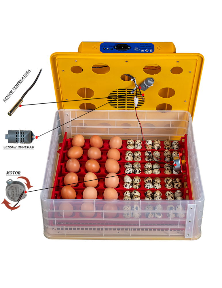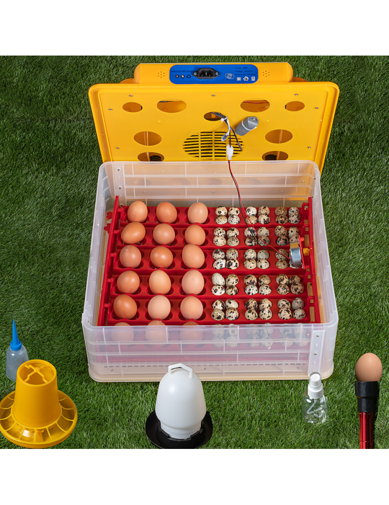 - Alta visibilidad de los huevos durante todo el proceso de la incubación y nacimiento de los pollitos gracias a su tapa transparente
