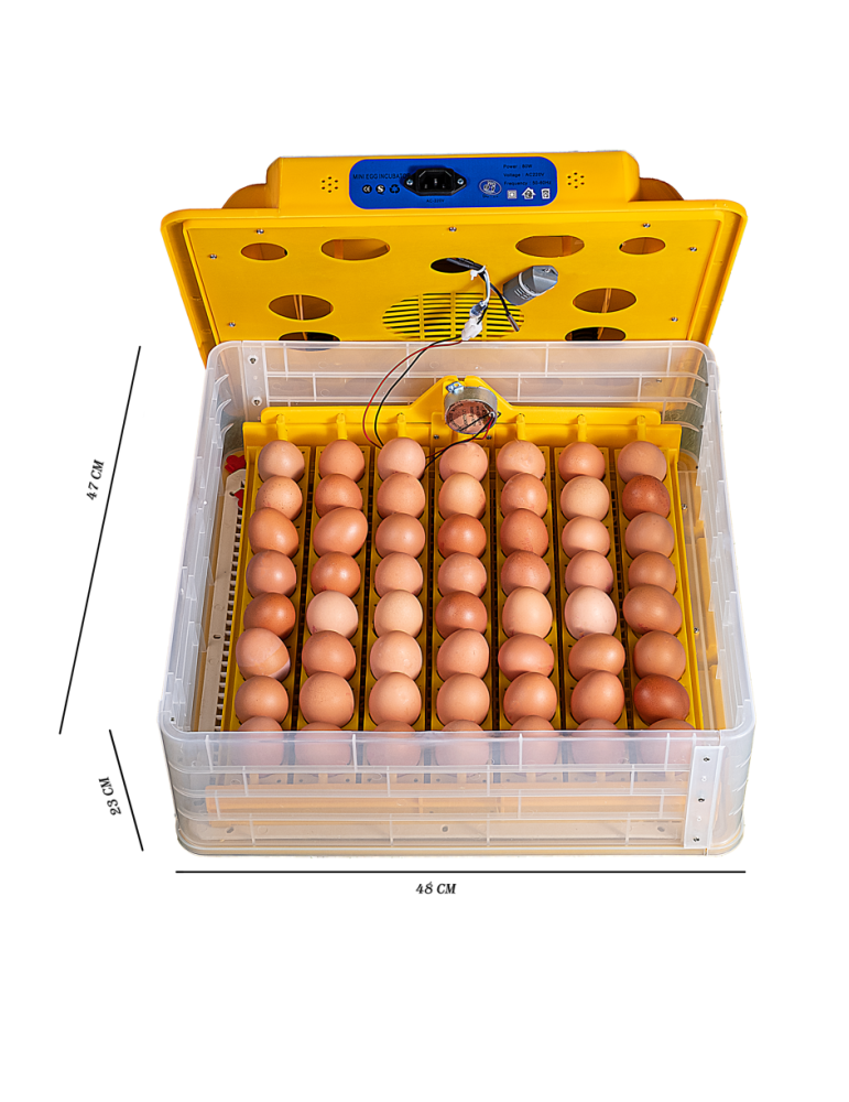 La incubadora WQ 56 es la última versión de la incubadora digital con volteo automático con capacidad para 56 huevos . Fácil de utilizar, nos ofrece un control total de la temperatura y del volteo. La parte frontal es transparente y nos ofrece una gran visibilidad de los huevos durante todo el proceso de la incubación. Incubadora fabricada con materiales de primera calidad.