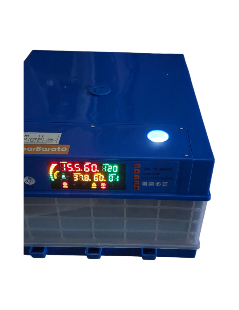 Incubadora de huevos con capacidad para 36 unidades. Diseñada para facilitar el proceso de eclosión. - Panel de control digital. - volteo automático por rodillos control de temperatura y humedad automática programable mediante humificador valida para cualquier tipo de aves funcion nacedora criadora te cuenta los días de puesta y el tiempo para hacer el siguiente volteo ovoscopio integrado en el panel modos de incubacion lectura de temperatura y humedad programadas y actual alarmas temperatura y humedad alta y baja 2 años de garantía