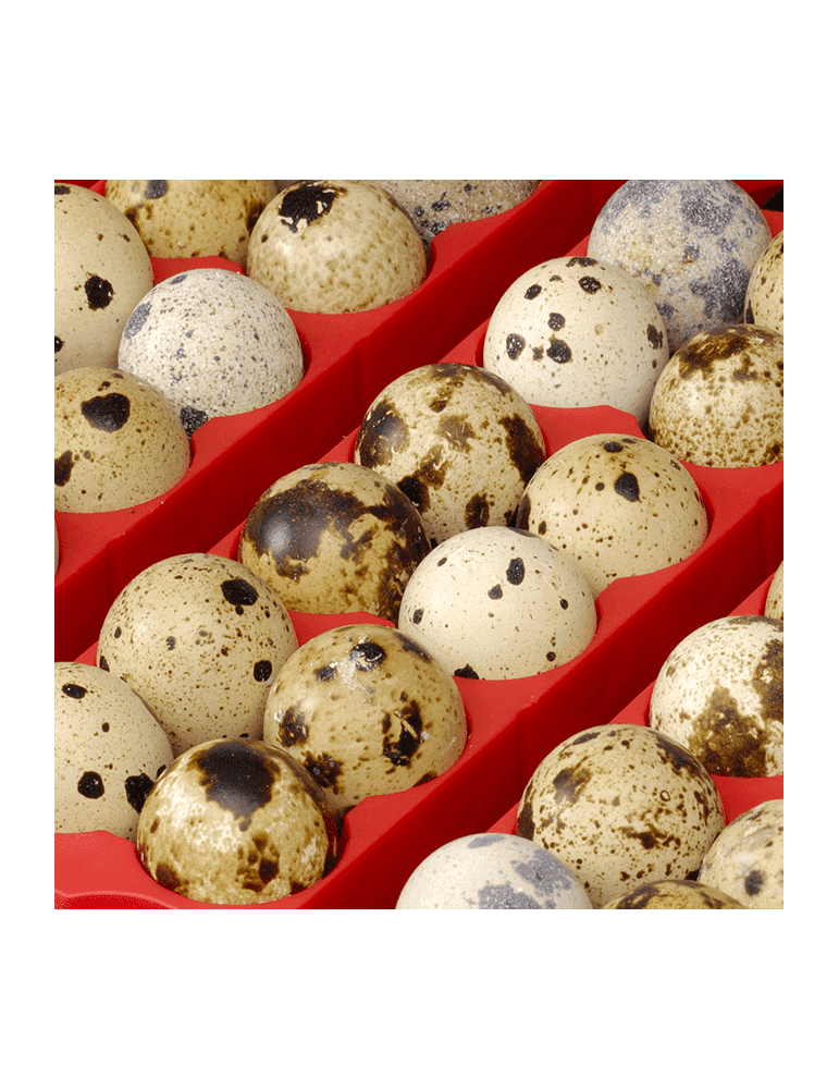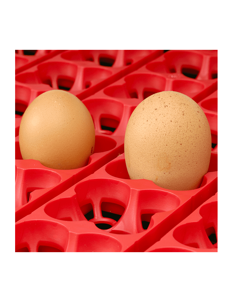 Primera y única copa para huevos profesional capaz de alojar en posición vertical todo tipo de huevos, de ganso a codorniz. En todas las copas se pueden colocar, en lugar de un huevo de gallina, 4 huevos de tamaño pequeño, permitiendo que en un muy poco espacio se puedan incubar hasta 196 huevos de codorniz, reduciendo el consumo de energía eléctrica.