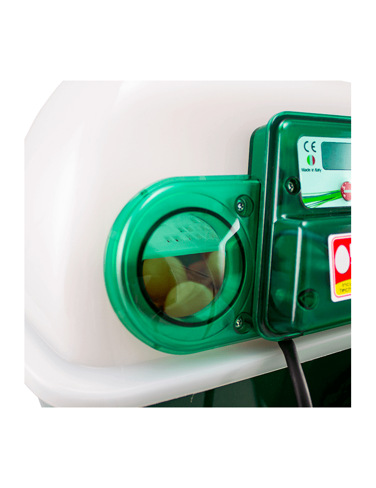 La incubadora digital “ET 12” con unidad de volteo de huevos OVOMATIC es una incubadora profesional diseñada para incubar diferentes tipos de huevos. Por ejemplo, es posible incubar huevos de gallina, faisán, pintada, codorniz, perdiz, perdiz, pavo, palmito, pavo real, perdiz, paloma, colador, aves exóticas y rapaces. La capacidad de la incubadora es de 12 huevos medianos / grandes o 48 huevos pequeños