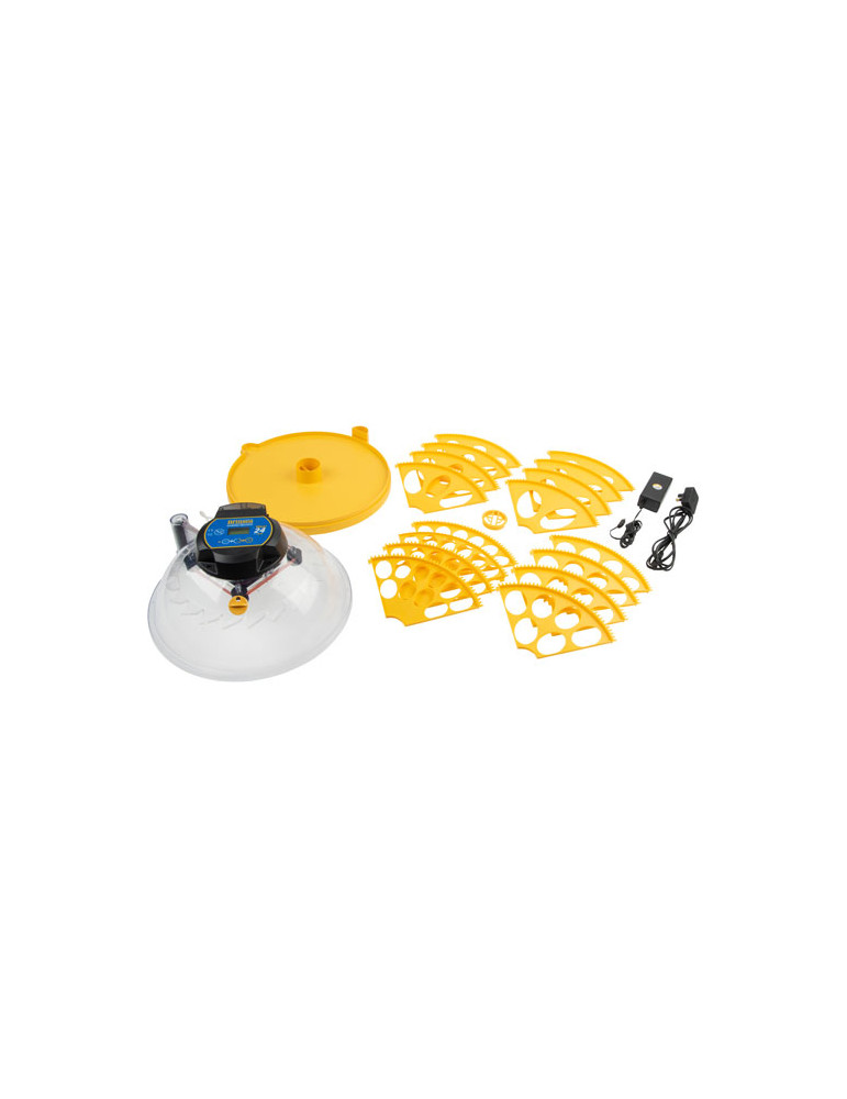 La incubadora Maxi 24 EX está fabricada con materiales aislantes y con tecnología Biomaster antibacterias. Incluye una pantalla digital que registra la temperatura, el número que días que quedan para la eclosión y el intervalo de volteo. La cubierta transparente permite seguir constantemente el periodo de incubación y el nacimiento de los pollitos.