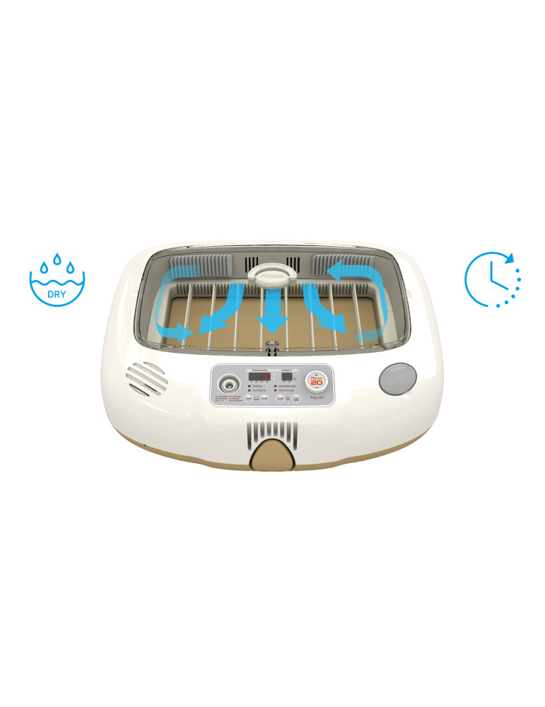 Incubadora totalmente automática para 20 huevos de gallina, 12 huevos de pato, 6 huevos de oca, 30 huevos de perdiz o 40 huevos de codorniz, válida también para otras especies.
