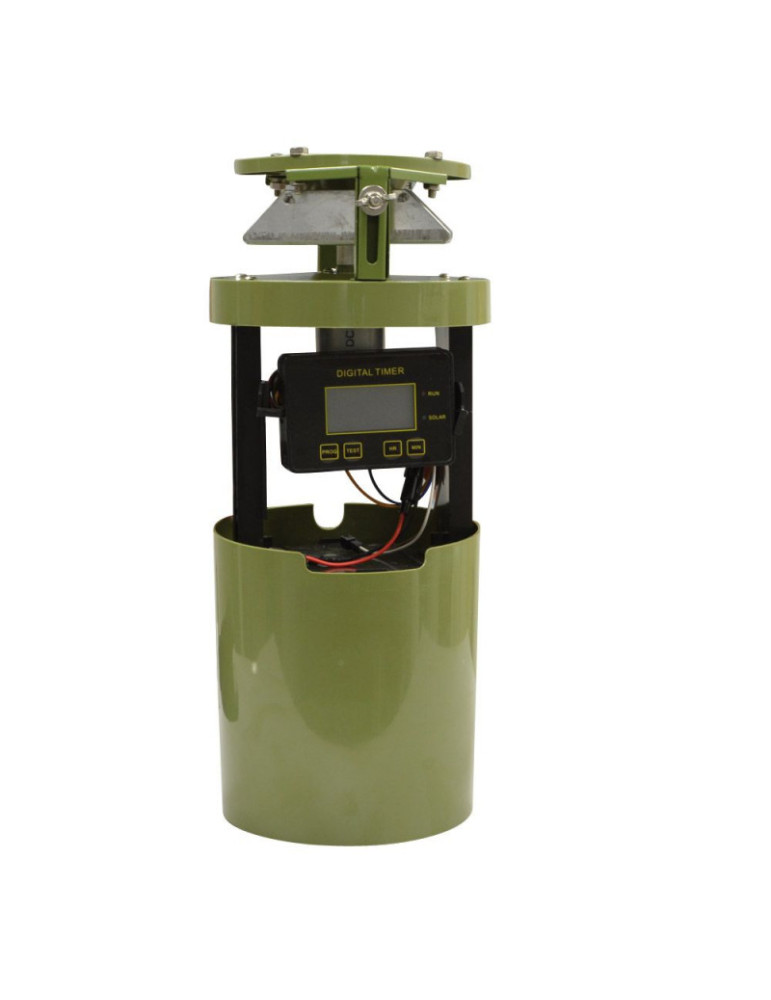 Funciona con batería de 12 V. , lo que le da una gran potencia, haciendo que funcione con cualquier meteorología, lanzando el grano entre 10-20 metros, en todas las direcciones.